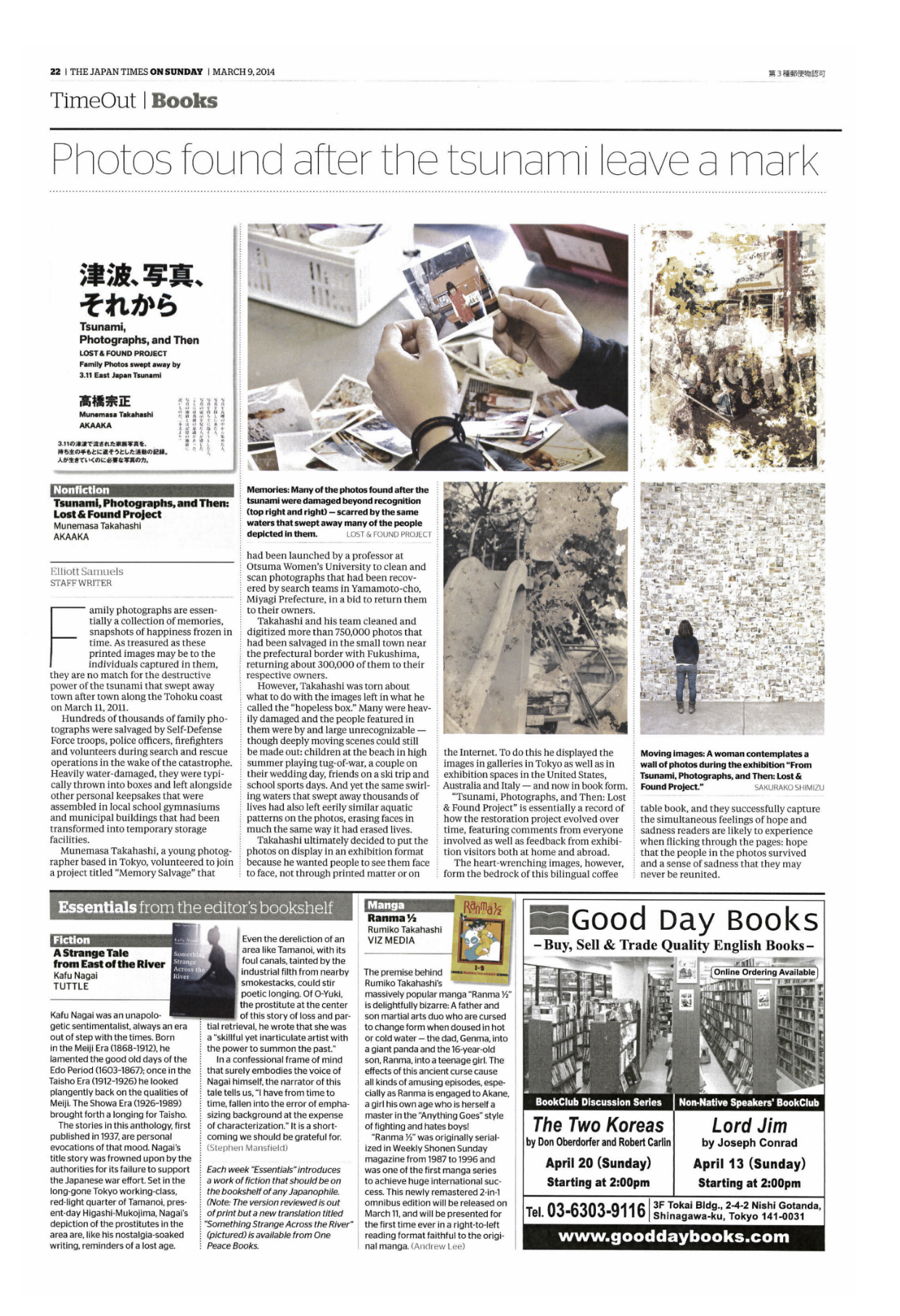 3月7日の東京新聞夕刊の一面( ! )に『津波、写真、それから--LOST&FOUND PROJECT』の高橋宗正の記事が掲載されました。