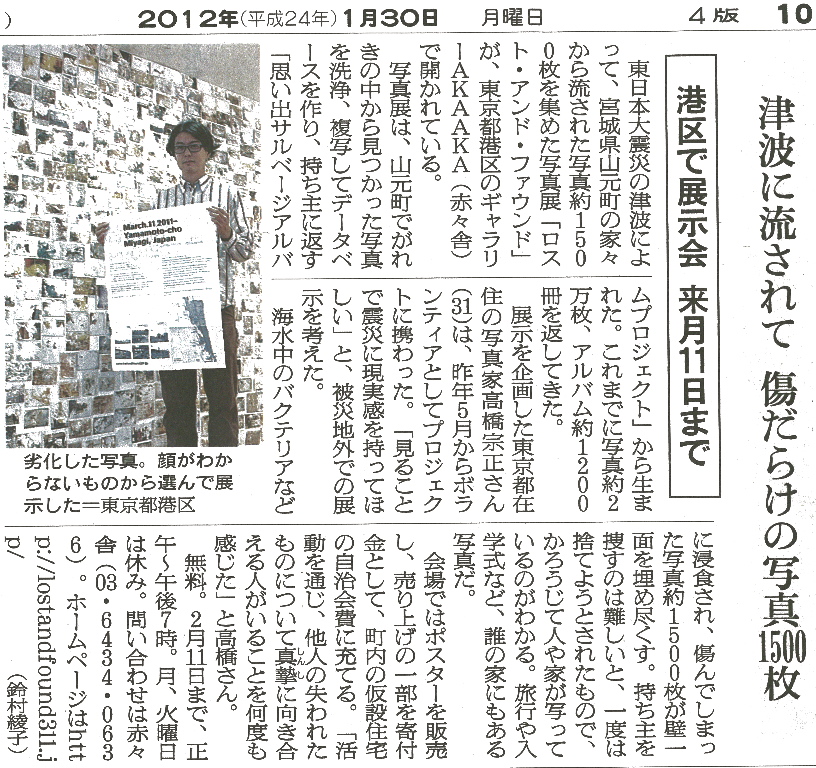 1月30日(月)の朝日新聞夕刊に、現在開催中の展示「LOST&FOUND」を紹介していただきました。