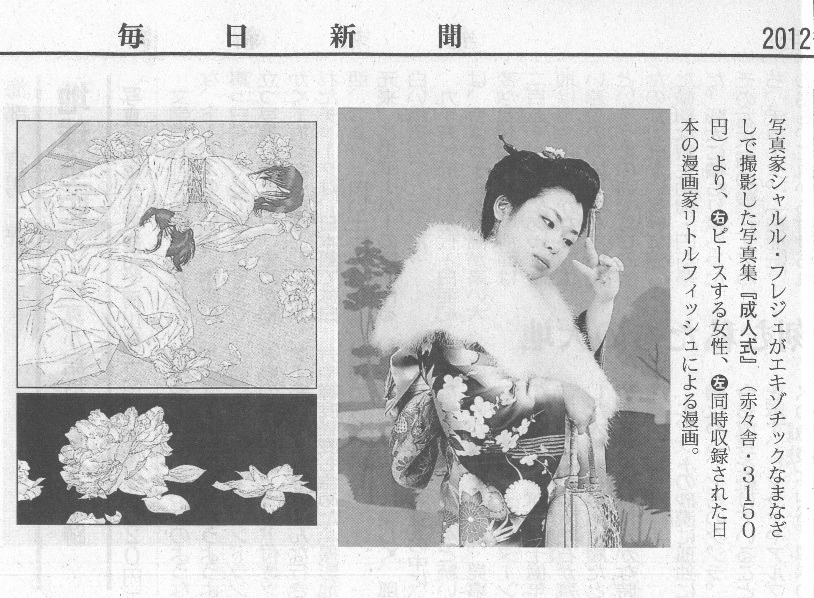 4月1日の毎日新聞朝刊の今週の本棚欄にて、写真シャルル・フレジェ、漫画リトルフィッシュの
