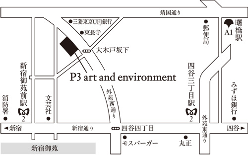 P3 art and environment 〒160-0004 東京都新宿区四谷4丁目34-1 新宿御苑前アネックスビル1F ■ 東京メトロ丸ノ内線新宿御苑前駅2番大木戸門出口