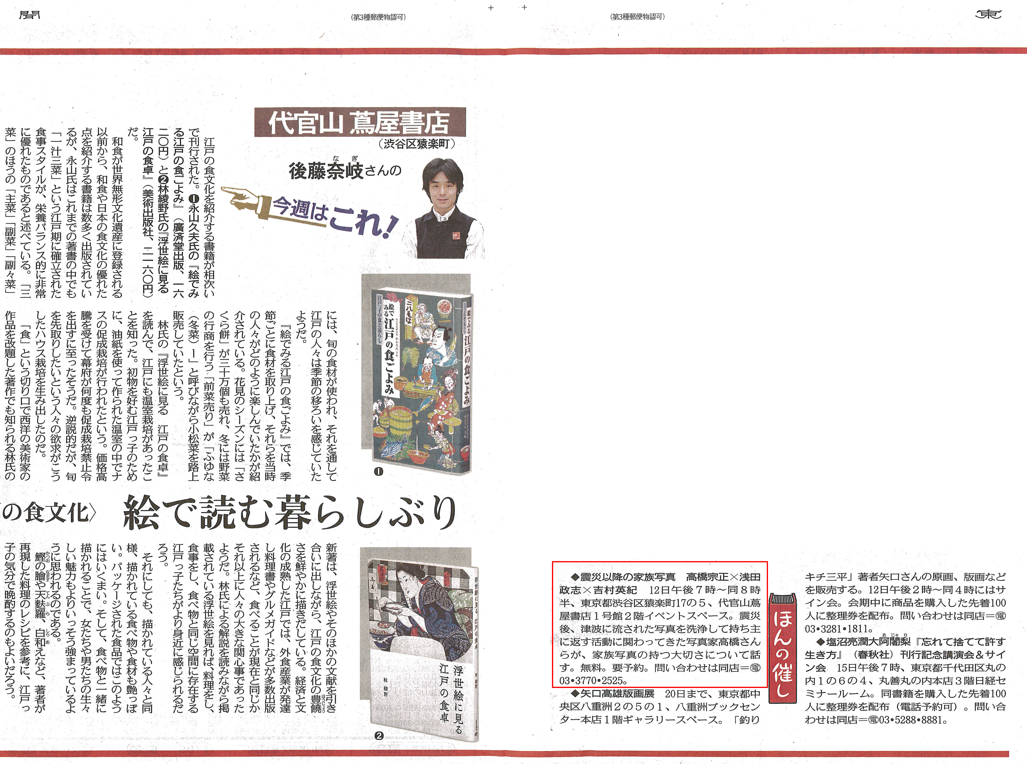 代官山蔦屋書店のスタッフさんが交代でご担当されている、東京新聞 4/7(月)朝刊コラム欄横にも、告知を掲載して頂きました。ご参加の予約も続々と頂いているようです!