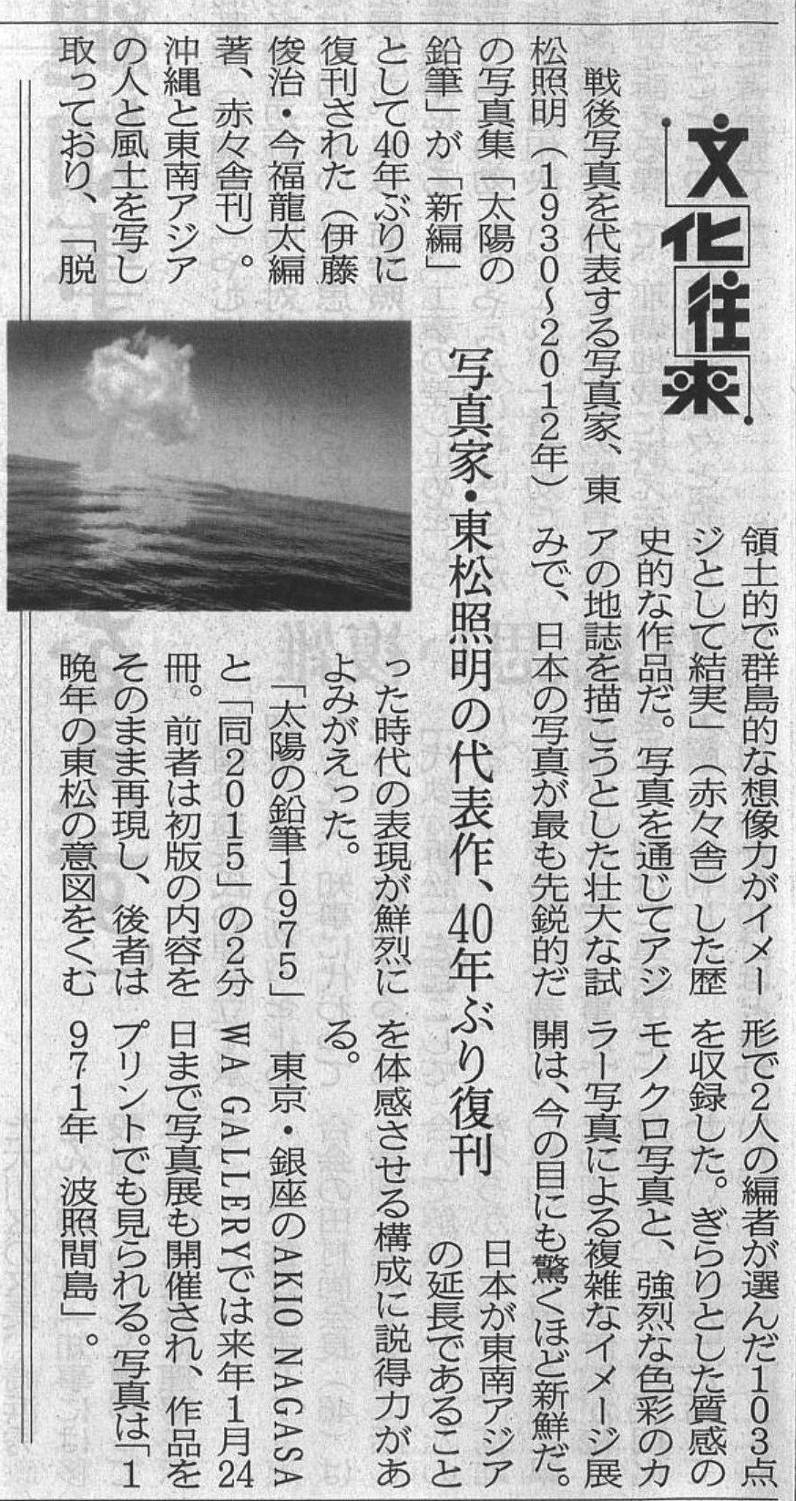文化面にて写真集に収録されている写真を掲載していただきました。