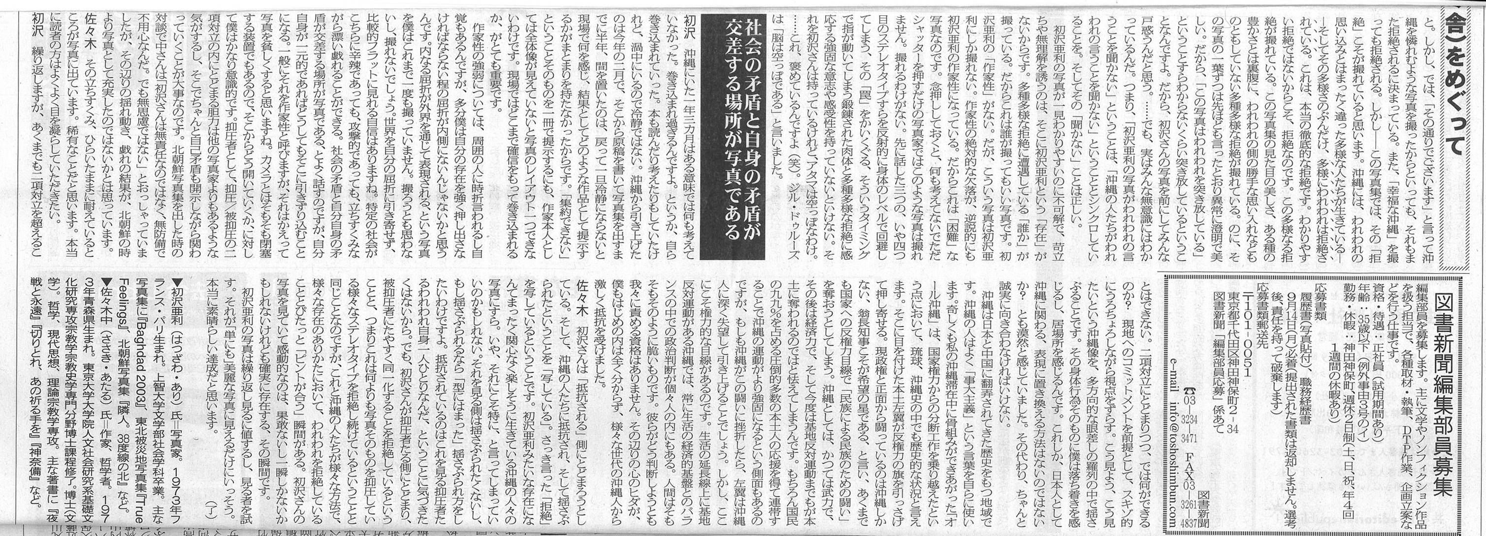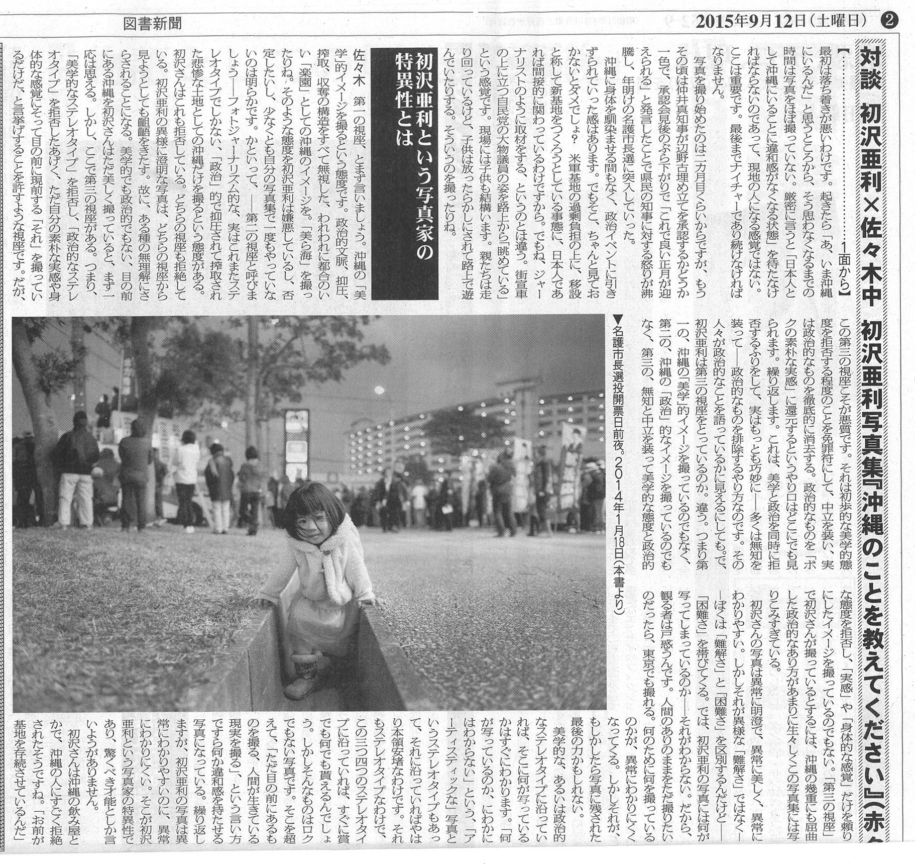 8/23付の東京新聞にて、初沢亜利のインタビューが掲載されました。1年3ヶ月沖縄の移住して感じた沖縄のこと、本土のこと、そして写真、写真集『沖縄のことを教えてください』に関連してお話してます。