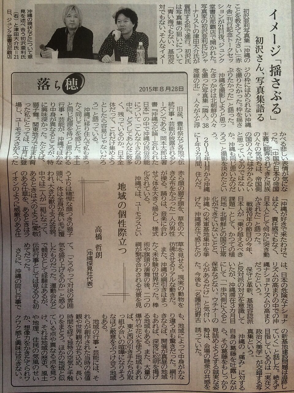 琉球新報(2015年8月28日付朝刊)