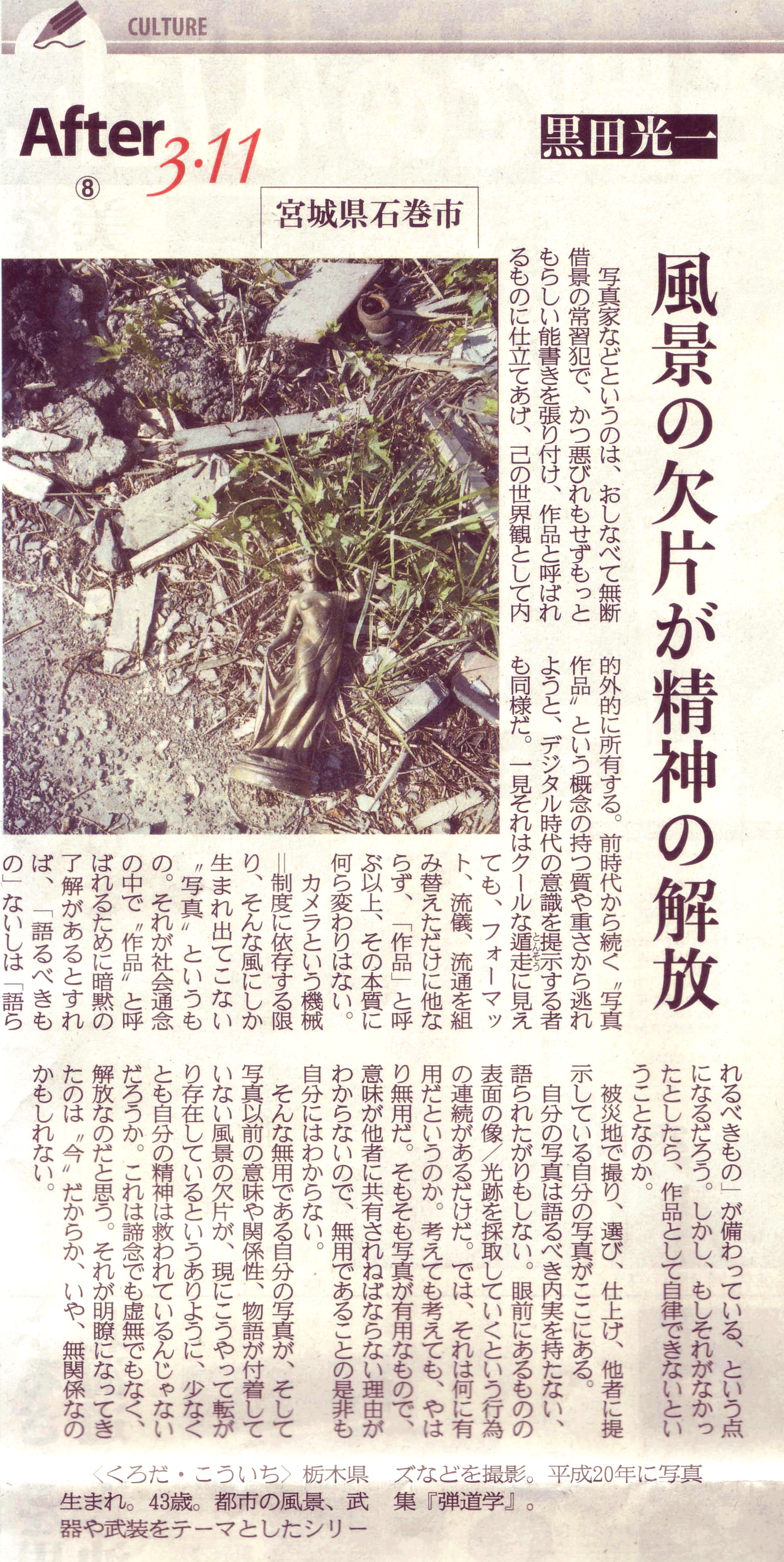 本日(8月17日)の産經新聞朝刊の文化面【After 3・11】のコーナーに黒田光一の記事が掲載されました。