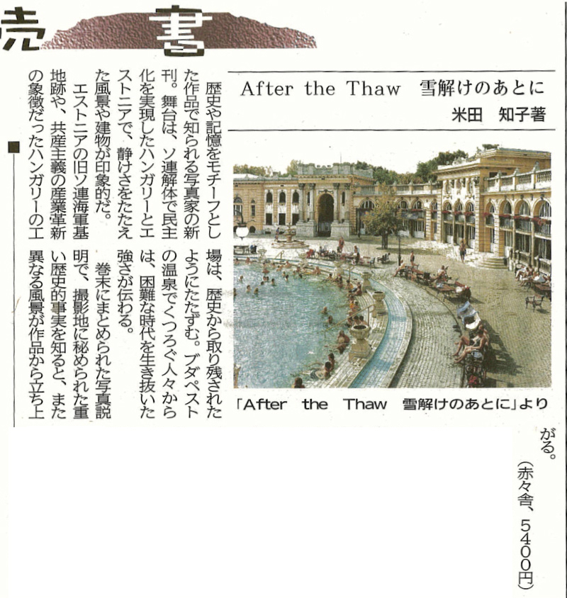 8月31日(日)の信濃毎日新聞書評欄にて、米田知子写真集『After the Thaw 雪解けのあとに』をご紹介いただきました。