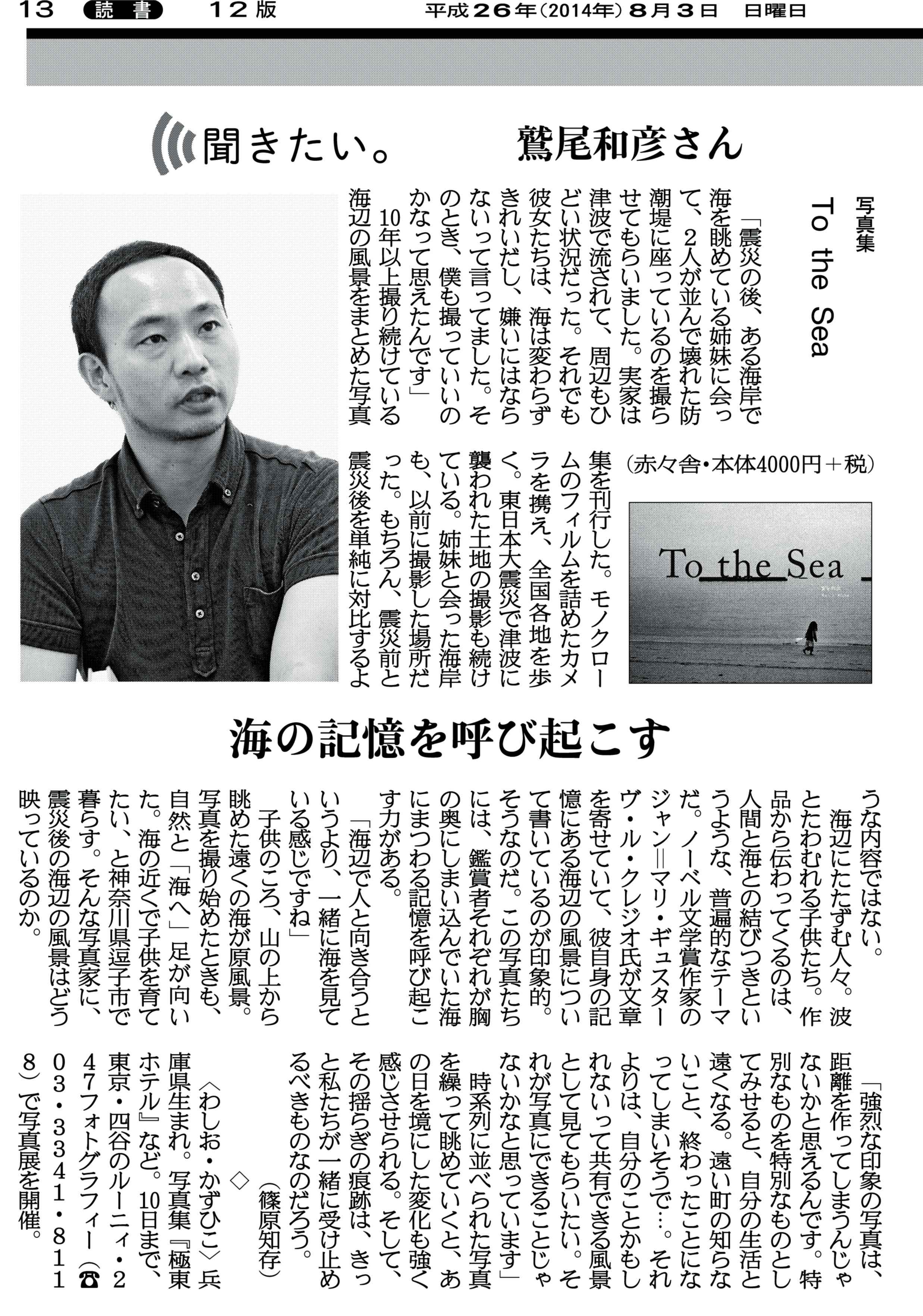 8月3日(日)の産經新聞朝刊読書面「聞きたい。」のコーナーにて、