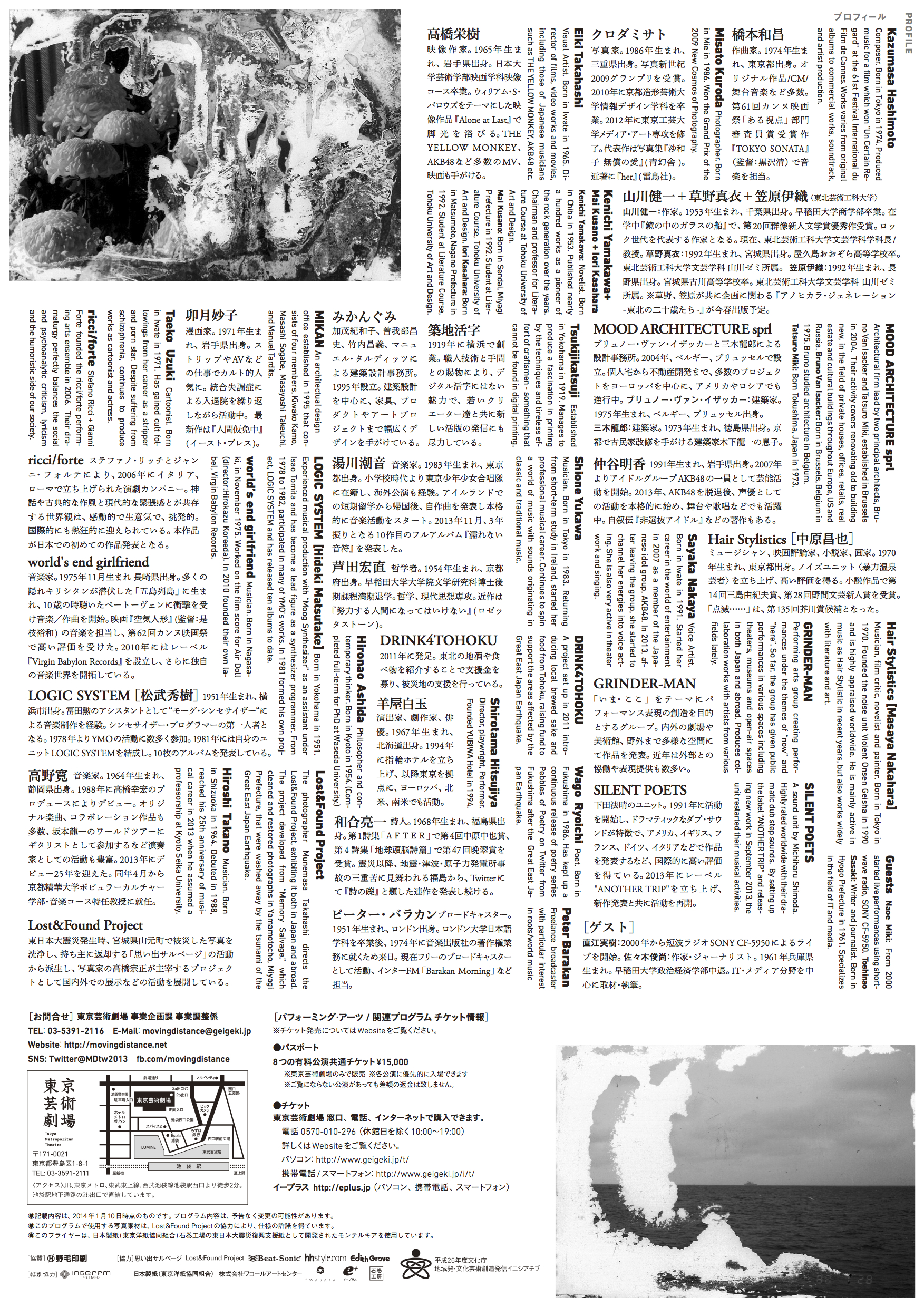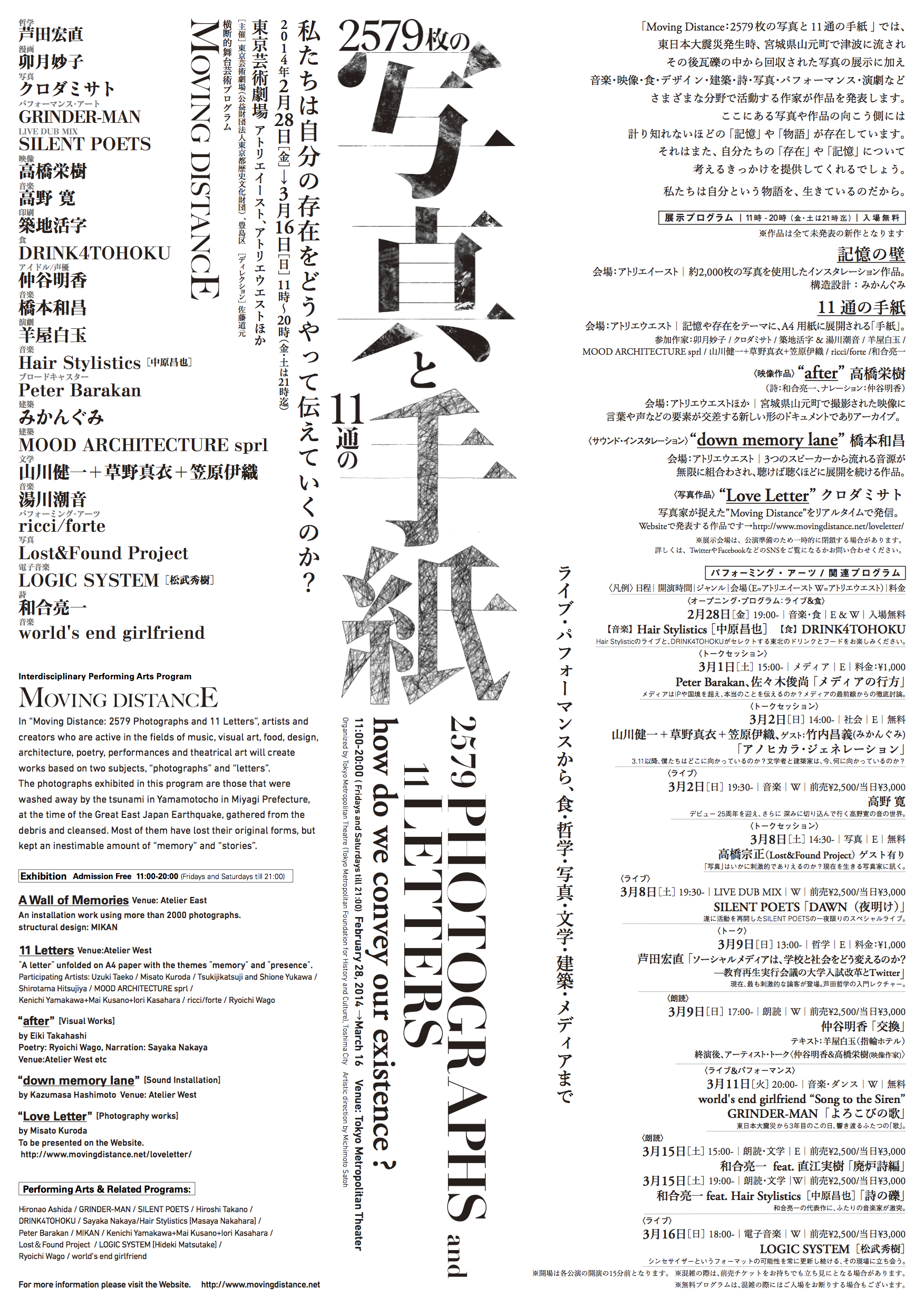 」では、〈写真〉と〈手紙〉というふたつのアイテムを題材に、音楽・映像・食・デザイン・建築・詩・写真・パフォーマンス・演劇などさまざまな分野で活動