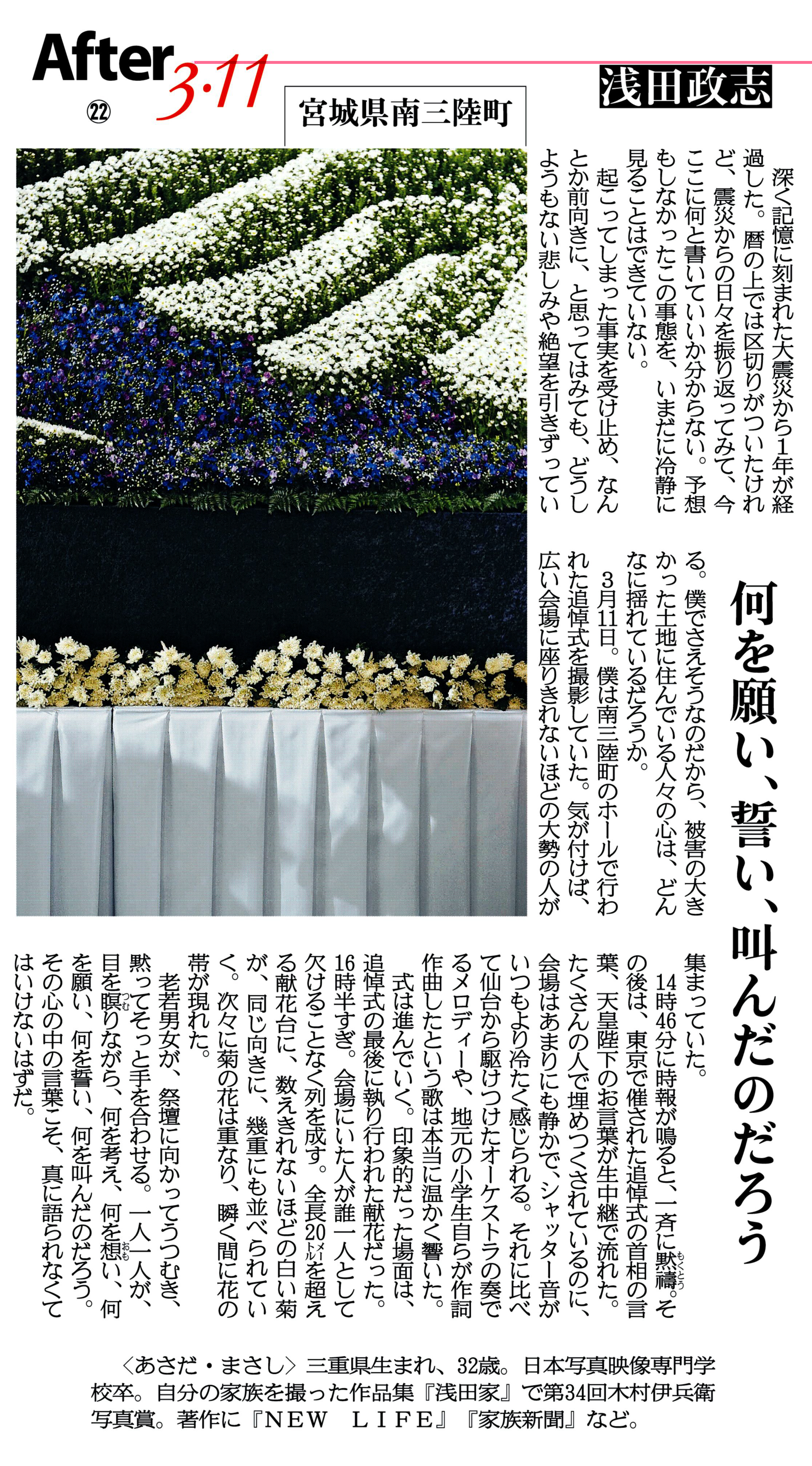 "After the disaster occurred, the first thing the people who lost their loved ones and houses came to look for was their photographs," Takahashi told me. "Only humans take moments to look back at their pasts, and I believe photographs play a big part in that. This exhibit makes us think of what we have lost, and what we still have to remember about our past."