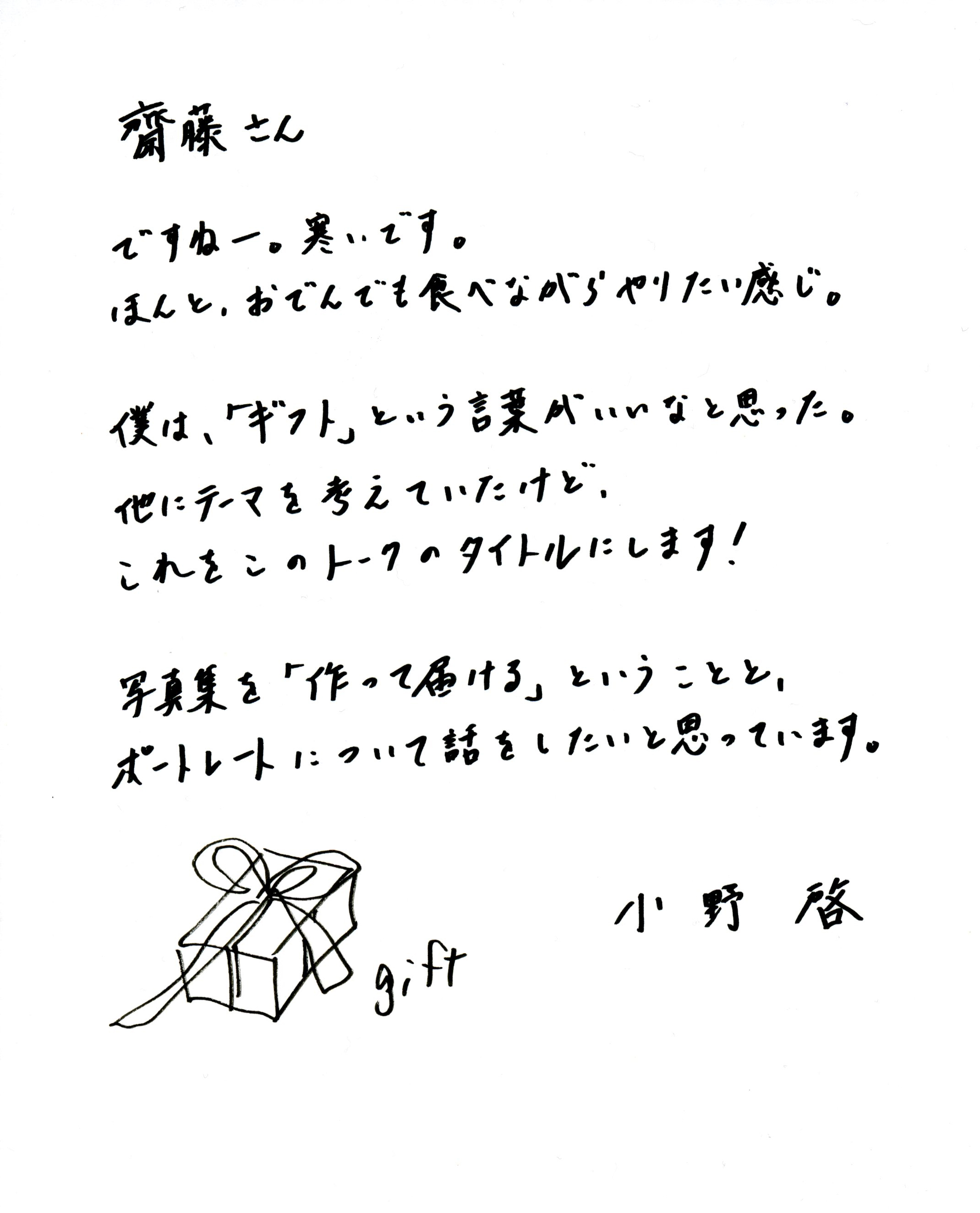 当日は「ギフト」というタイトルのもと、写真集やポートレートのことが話題になりそうですね。