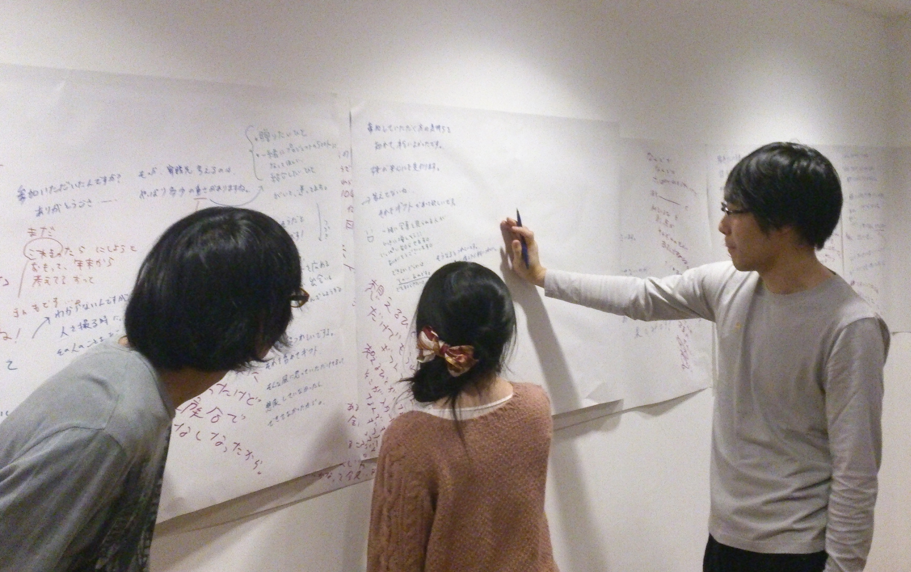 筆談を壁の大きな模造紙に書いていくというスタイルで、今の時代に写真集を作ること、作った写真集を人へと届けることなど