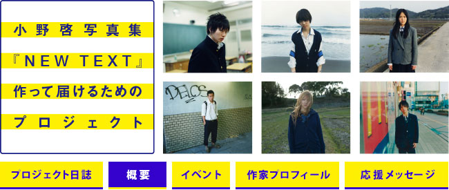 小野啓写真集『NEW TEXT』作って届けるためのプロジェクトは下記を目的としています。